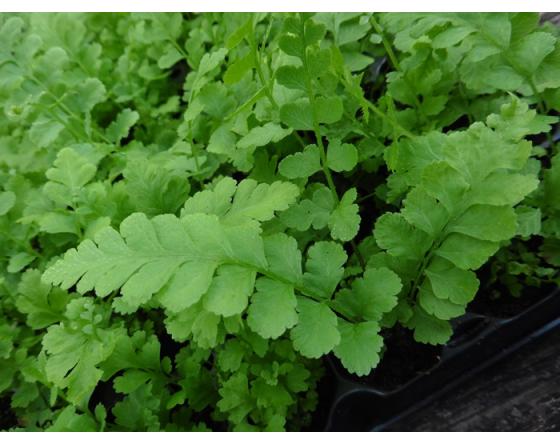 Deciduous ground-cover fern for moist soils in shade. Height : 30cm. Width : 70cm. Hardiness : -22°C.